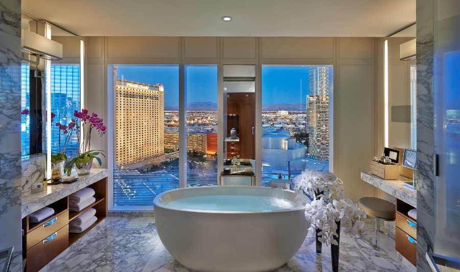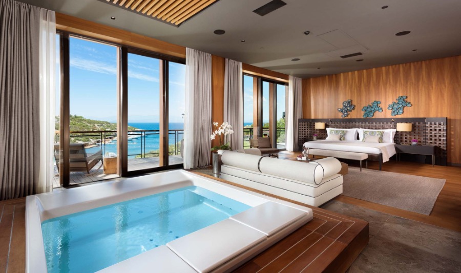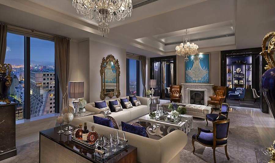 This triumphant marvel includes two master suites, 10 oversized VIP guest suites, 21 luxury bathrooms, three gourmet kitchens, five bars, a massage studio/wellness spa, state-of-the-art fitness center, 85-foot glass tile infinity swimming pool.